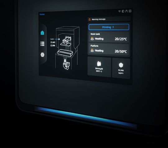 Печатная платформа, резервуар для смолы и оптический блок оснащены функцией автоматического обнаружения для мониторинга отсутствующих компонентов или остатков в режиме реального времени, а также обеспечивают четкие подсказки на сенсорном экране для безошибочной работы.