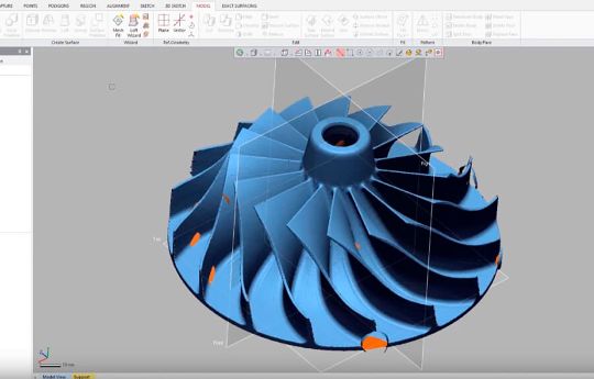3D-сканер — это оптический измерительный прибор, поэтому мы может собрать данные только по видимой геометрии объекта. Тем не менее Scantech Magic позволяет отсканировать отверстия на глубину на 2 диаметра. Например, отверстие диаметром 40 мм мы можем отсканировать в глубину на 80 мм.